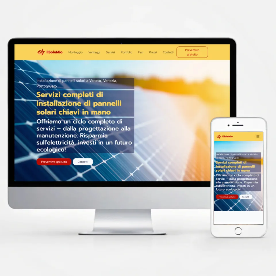 Il Sole Mio è un’azienda specializzata nell’installazione e nella manutenzione di pannelli solari per abitazioni private, ville e attività commerciali. L’obiettivo del sito è presentare i servizi in modo chiaro e accessibile, sottolineare l’esperienza del team e trasmettere fiducia, posizionando l’azienda come un partner affidabile nel settore delle energie rinnovabili.