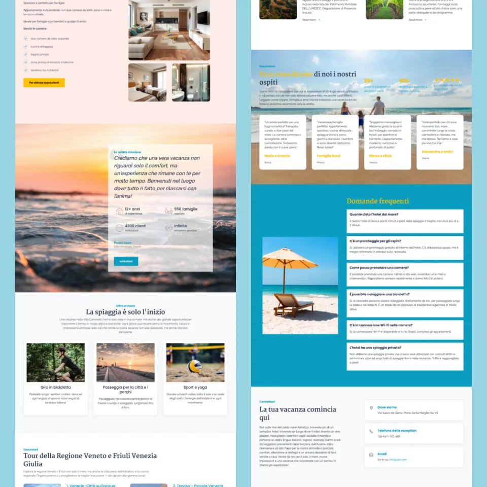 Creiamo siti che trasmettono l'atmosfera della tua struttura, valorizzano le camere, i servizi, le recensioni e tutte le informazioni pratiche. L'obiettivo è far sì che il visitatore voglia soggiornare proprio da te.